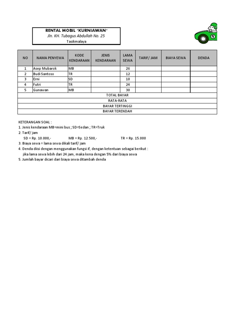 Contoh soal excel dan penyelesaiannya (kalau terlalu cepat silahkan download soalnya di sini :
